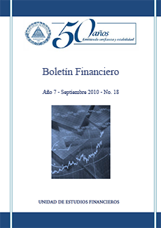 De junio 2001 hasta septiembre 2010, el BCN publicó, de forma trimestral, el Boletín Financiero, con el objetivo de presentar la evolución del sistema bancario nicaragüense, compañías de seguros y mercado de valores. La fuente de información fundamental de este Boletín fueron los estados financieros proporcionados por las propias instituciones financieras, a partir de los cuales se analizaron las principales variables de esta actividad.