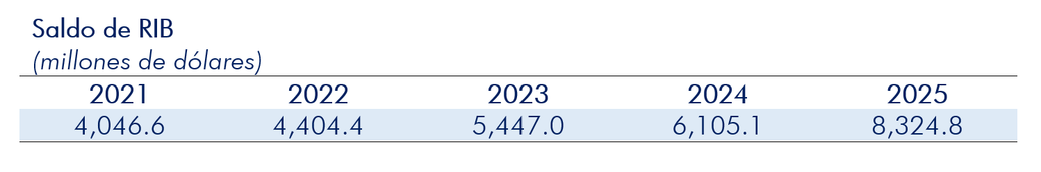 El crecimiento de las RIB ha sido sostenido en los últimos años, de tal manera que se ha duplicado en cuatro años, como se muestra en el siguiente detalle: