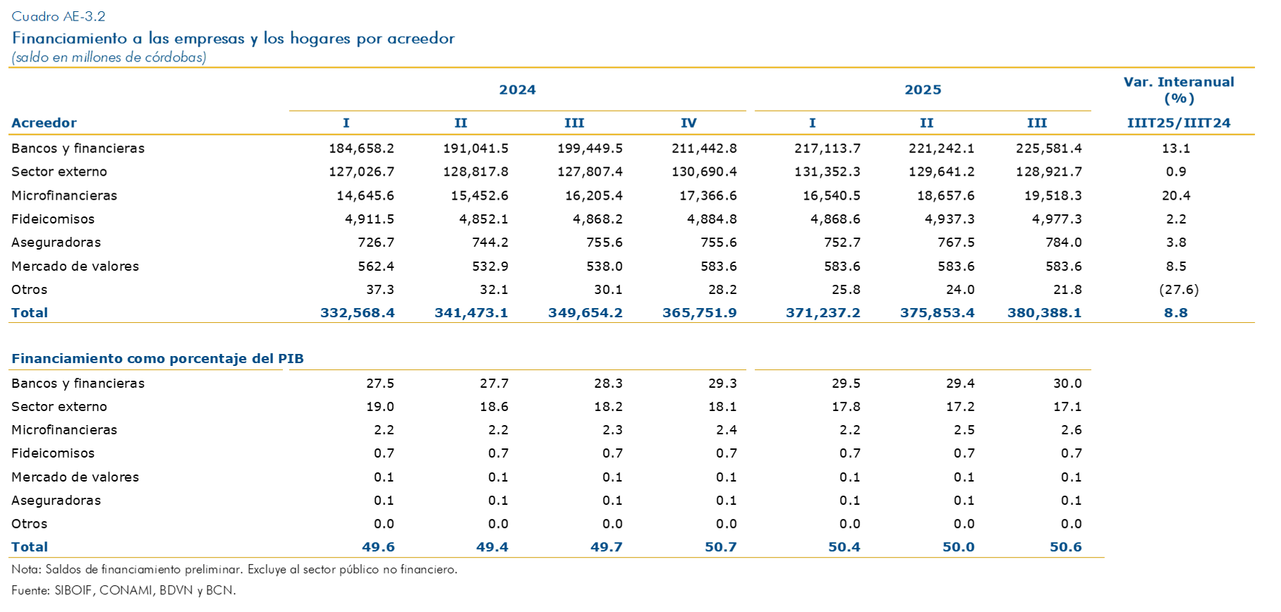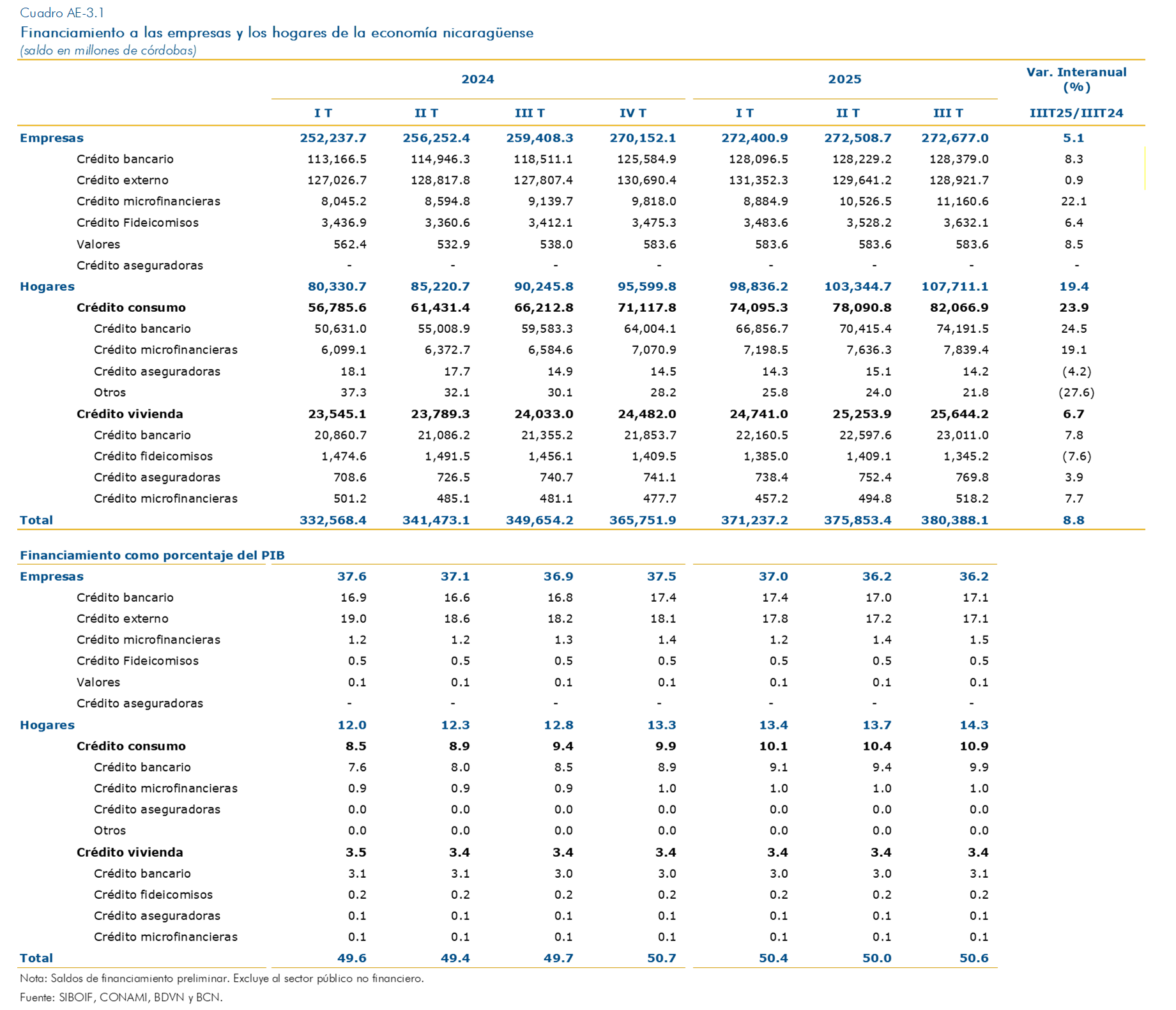 A septiembre de 2025, la economía nicaragüense continúa mostrando un crecimiento económico sostenido. Los datos del PIB del segundo trimestre reflejan un crecimiento de la actividad económica en la mayoría de los sectores productivos, impulsado por la demanda interna, con aumento del consumo y la inversión, mientras los flujos externos permanecen estables, respaldados por las exportaciones. Así mismo, se observa una baja tasa de desempleo y un aumento del empleo formal, mientras la inflación se mantiene en niveles bajos y estables. Los balances del sector público reflejan superávits determinados principalmente por el crecimiento de los ingresos tributarios y una política de moderación y focalización del gasto público. La política monetaria ha cumplido el objetivo de estabilidad de la moneda nacional, fortaleciéndose los niveles de reservas internacionales. Todo lo anterior, está favoreciendo la estabilidad financiera y una reducción en las vulnerabilidades del Sistema Financiero Nacional (SFN). No obstante, persisten los riesgos para la estabilidad financiera mundial producto de la incertidumbre relacionada con las tensiones geopolíticas y comerciales, las preocupaciones sobre la sostenibilidad fiscal de las principales economías, entre otros.