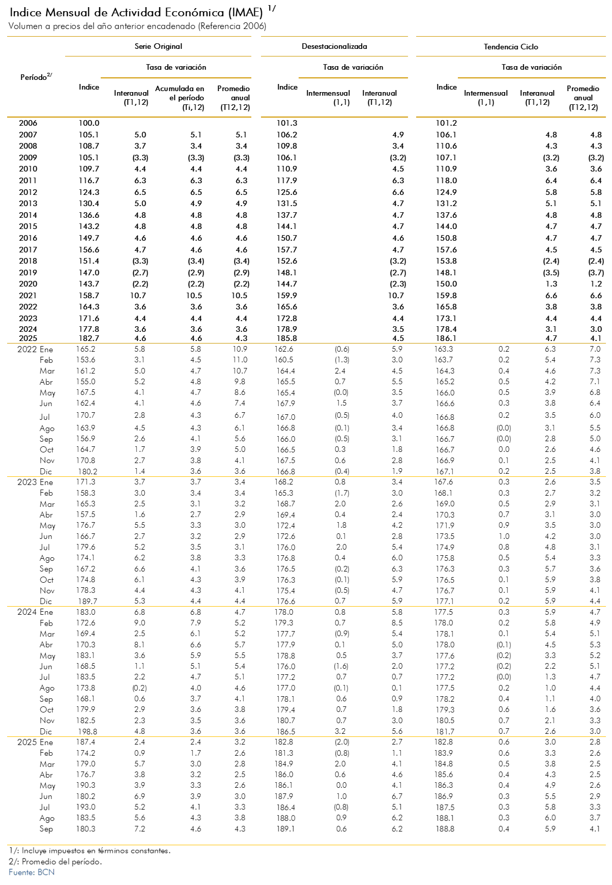 [1]La serie del IMAE se actualizó por la disponibilidad de nueva información mensual a agosto de 2025.