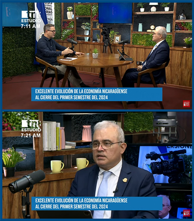 El Presidente del Banco Central de Nicaragua (BCN), Ovidio Reyes R., brindó el 23 de julio de 2024 una entrevista en el espacio televisivo Estudio TN8, en la cual se refirió a la evolución de la economía nicaragüense en el primer semestre de 2024.