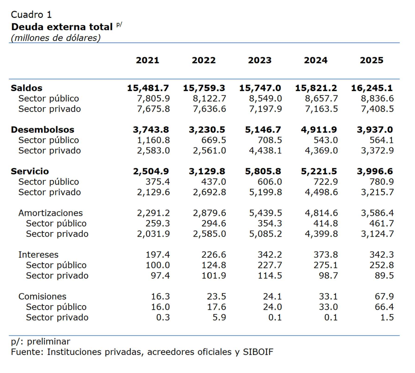 [1]El saldo de la deuda externa incluye sector privado y sector público.