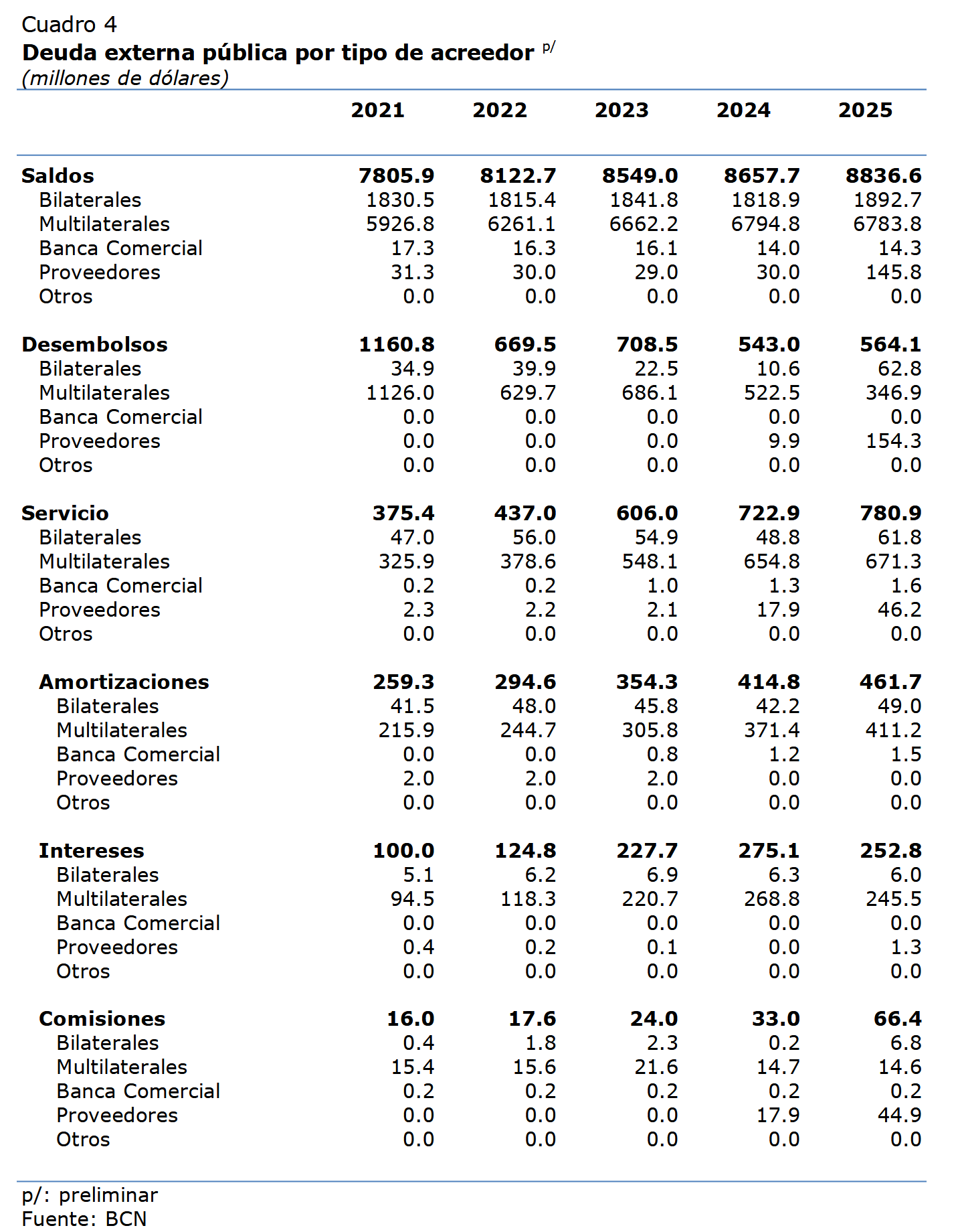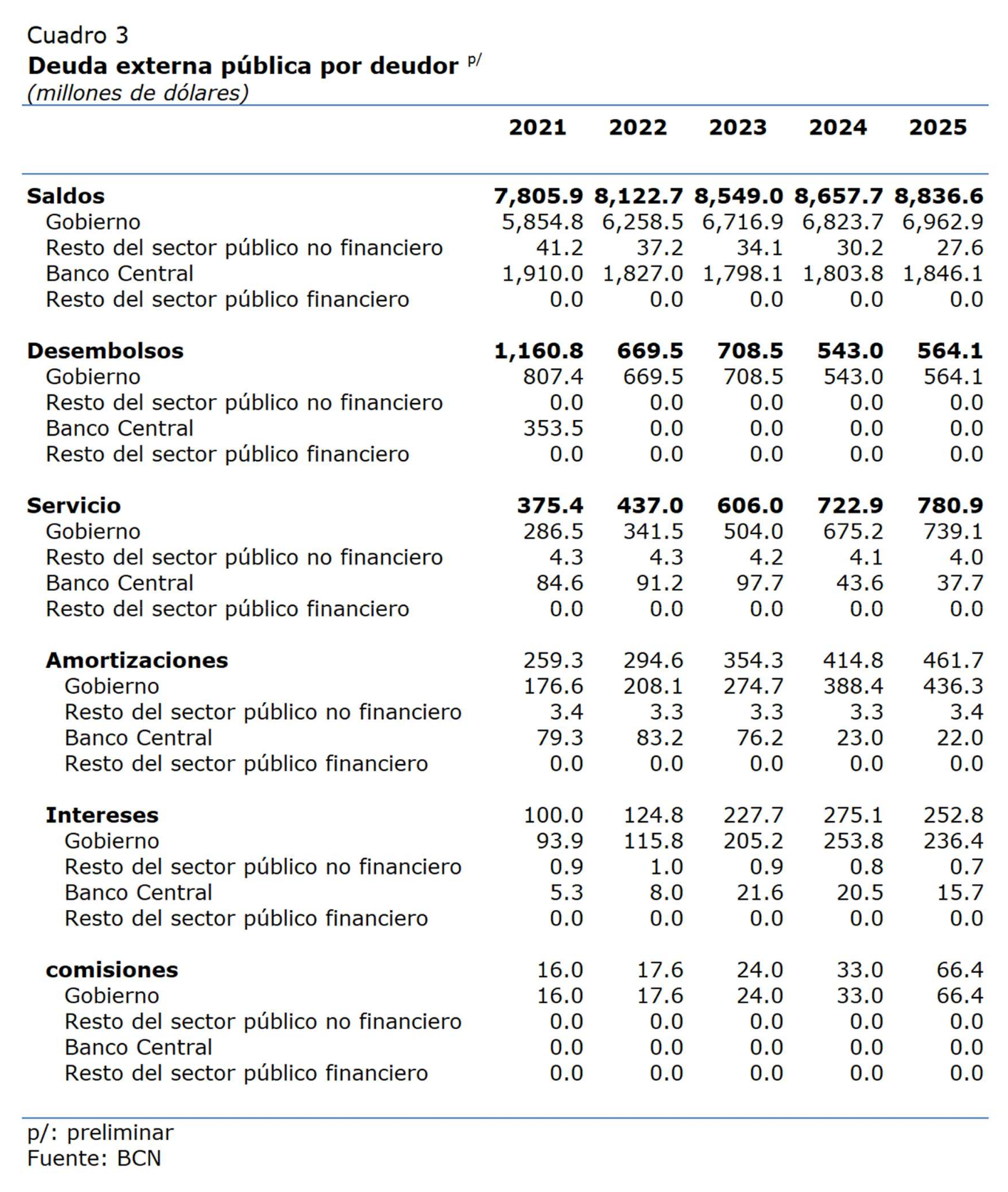 - Los datos de la deuda externa pública no incluyen los depósitos de organismos internacionales en el BCN.
