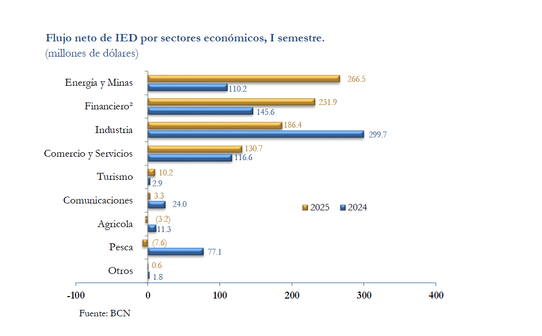 Inversión Extranjera Directa en Nicaragua en el primer semestre de 2025