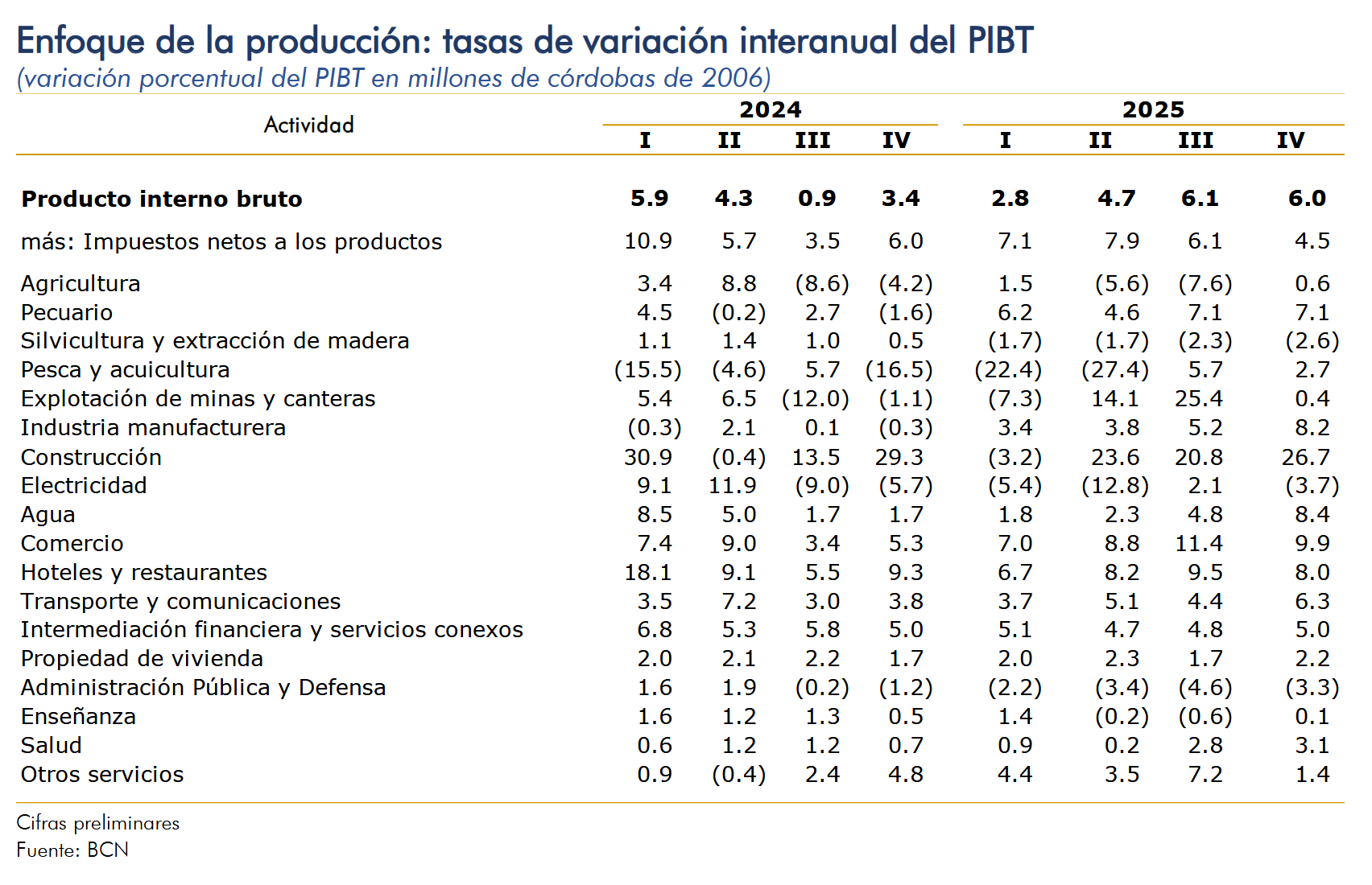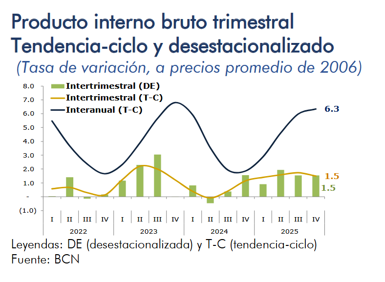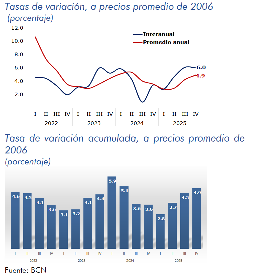 En el cuarto trimestre de 2025, el Producto Interno Bruto registró un crecimiento interanual de 6.0 por ciento (6.1% en el trimestre anterior). Asimismo, el crecimiento en el año 2025 se ubicó en 4.9 por ciento, según la estimación preliminar del PIB trimestral.